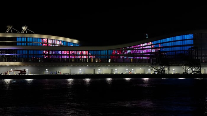 Commissioned through a public-private collaboration between MSC cruises, PortMiami, and the Miami-Dade County Department of Cultural Affairs’ Art in Public Places Program, MARIS by Danielle Roney Studio is one of world’s largest permanent, real-time projection mapping installations. With a commission fee of $2.5 million, the project was developed using a first-of-its-kind custom animation platform powering 165 million pixels of generative, oceanic 3D animation across the terminal’s 10,816-square-foot smart glass façade, where live data from the National Oceanic and Atmospheric Administration (NOAA) research sensors continuously shape and propel a dynamic virtual ecosystem that evolves in response to conditions in the surrounding oceanic biosphere.
