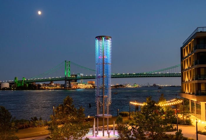 River Soundings is a 60-foot-tall public sculpture by the artist team Laura Haddad and Tom Drugan (Haddad|Drugan), located at the Rivermark Northern Liberties development in Philadelphia. Completed in 2025 as part of a $1.2 million commission, the sculpture serves as a landmark along the Delaware River Trail. In 2025, Philadelphia retained its status as the city with the highest density of public art in the country.